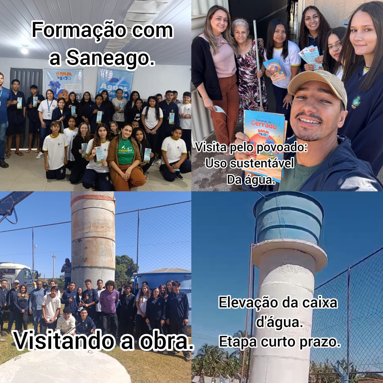 Além da infraestrutura, o projeto contemplou atividades educativas junto à comunidade. Oficinas e rodas de conversa com a SANEAGO, abordaram o uso sustentável da água e a importância da preservação desse recurso. Os estudantes saíram pelo povoado entregando panfletos, conversando com os moradores sobre o uso sustentável da água, e trabalhando de forma direta a temática do meio ambiente.